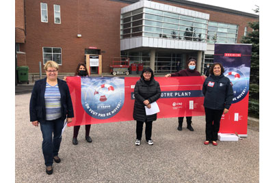Baie-Comeau, le 2 octobre 2020. – Avec pour slogan « 2e vague : On veut pas se noyer », la Centrale des syndicats du Québec (CSQ), la Fédération de la Santé du Québec (FSQ-CSQ) et le Syndicat des intervenantes et intervenants de la santé du Nord-Est québécois (SIISNEQ-CSQ) lancent une offensive visant à obliger la direction du centre intégré de santé et de services sociaux (CISSS) de la Côte-Nord à rendre public son plan concret pour protéger le personnel au cours des prochains mois de la crise sanitaire.