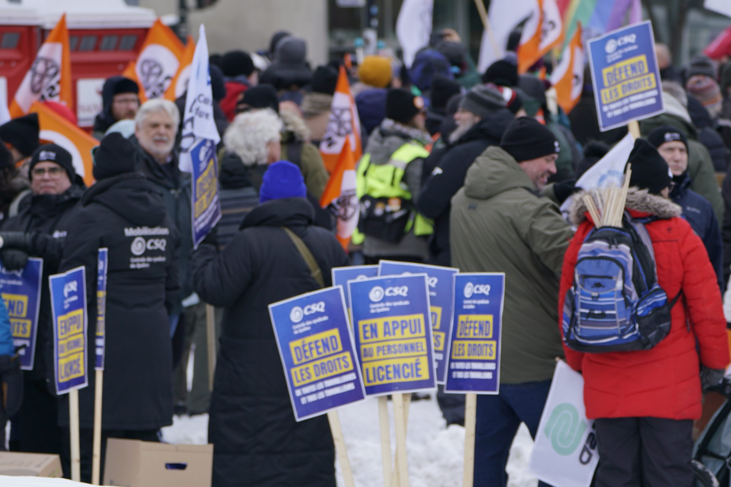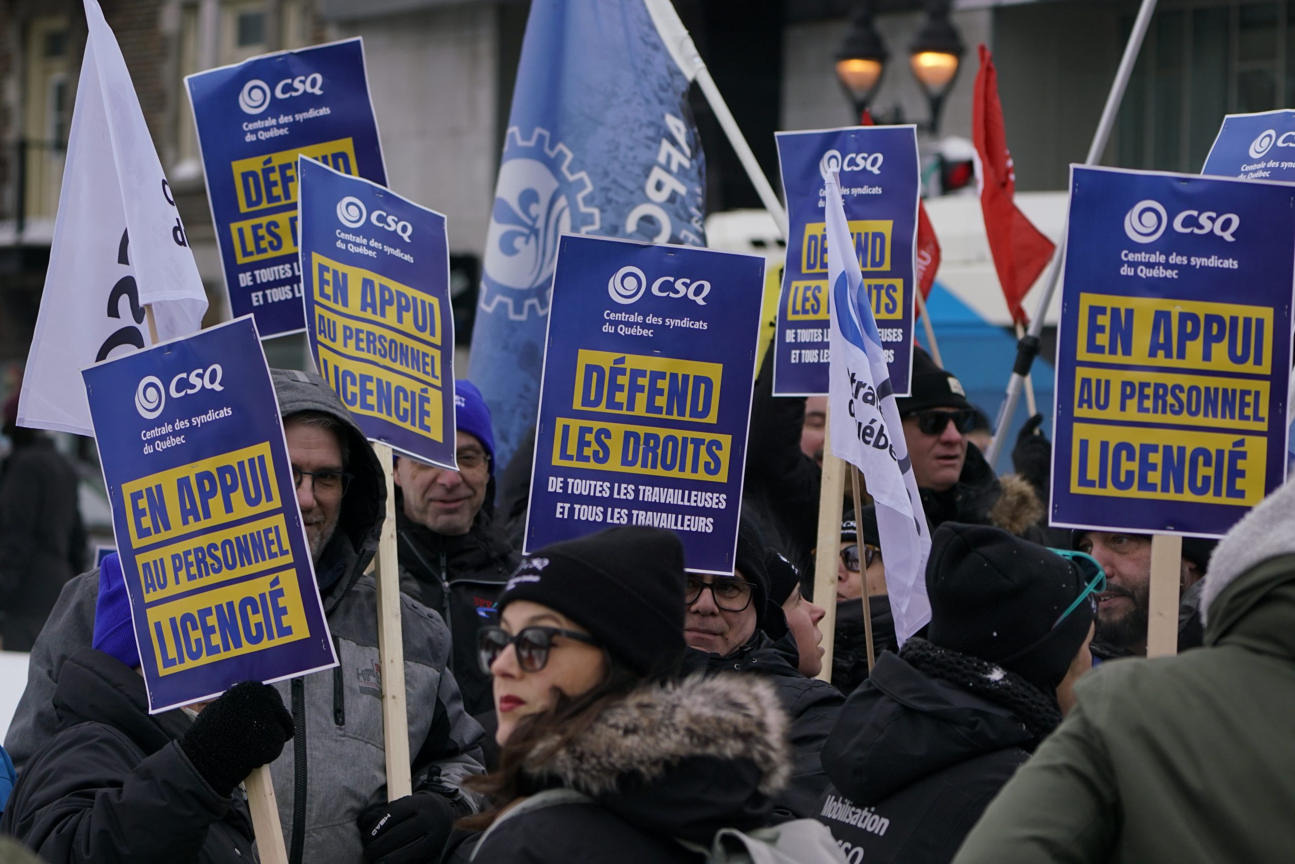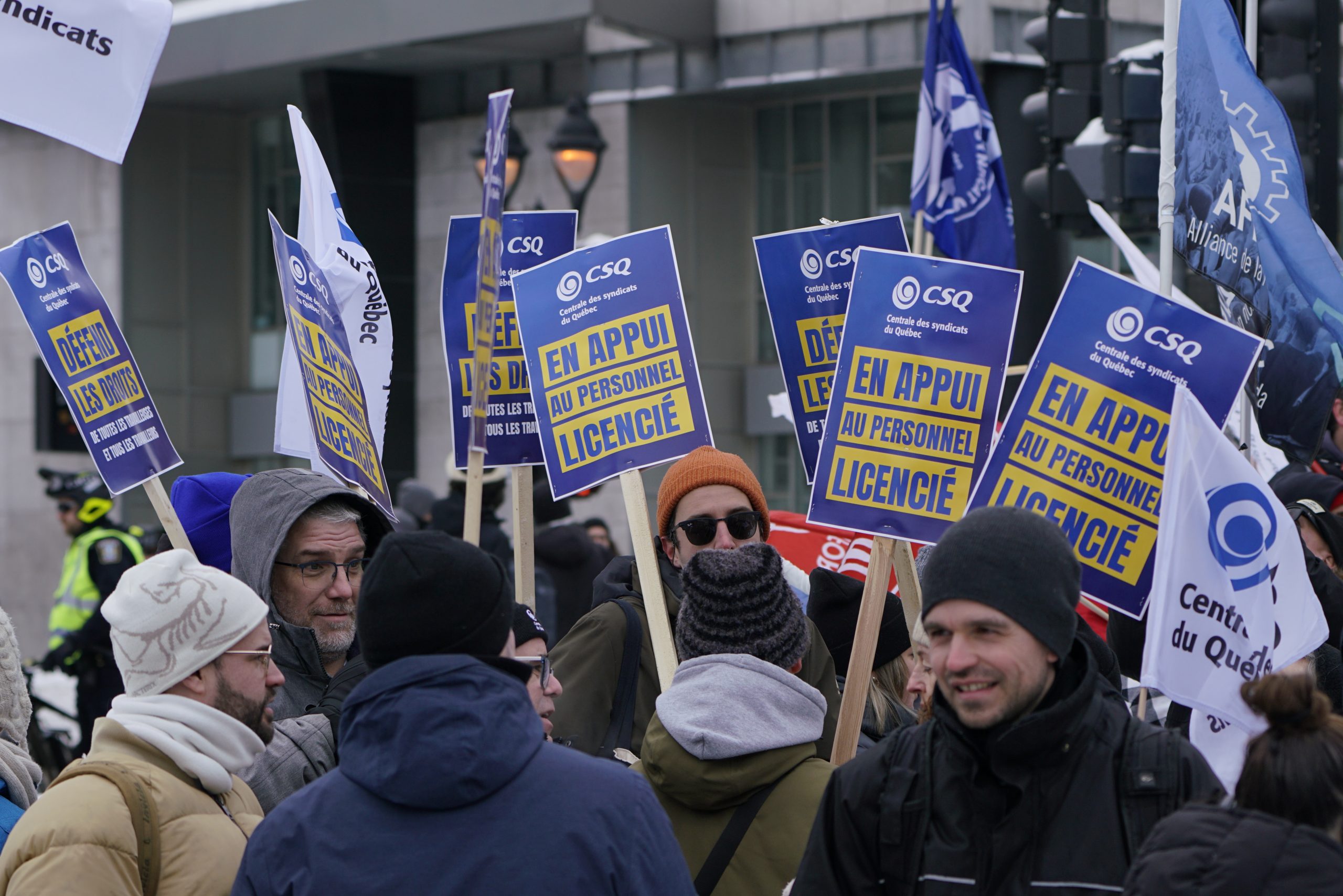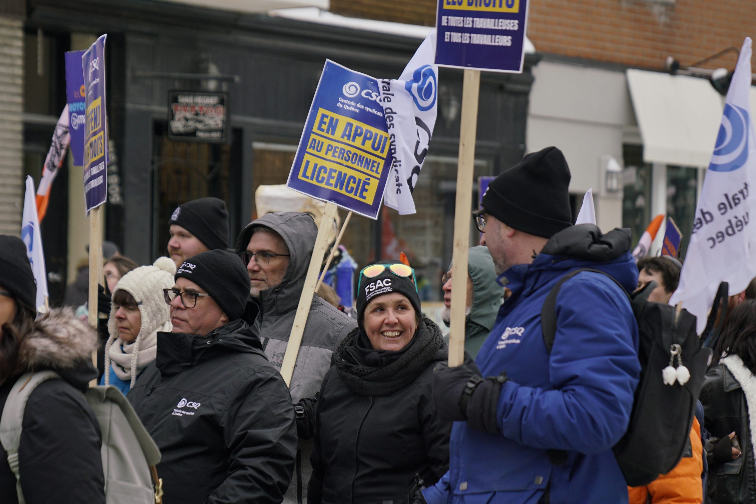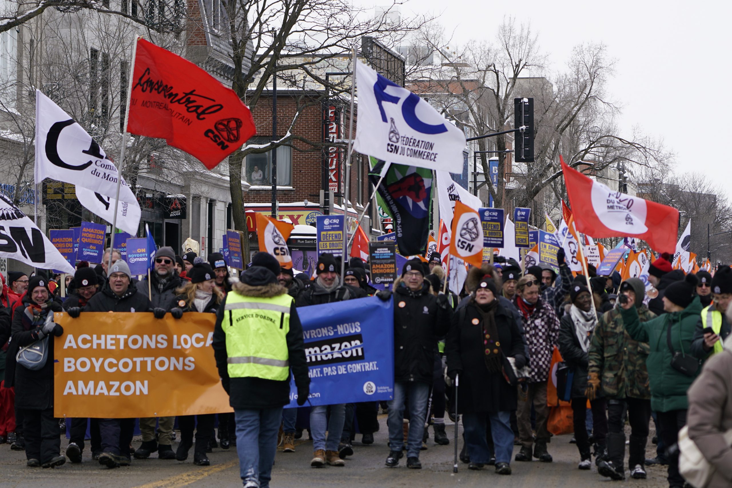 Dans une magnifique démonstration de solidarité, l’ensemble des organisations syndicales du Québec ont répondu à l’appel de la Confédération des syndicats nationaux (CSN) pour soutenir les travailleuses et travailleurs licenciés par Amazon. La CSQ y était.