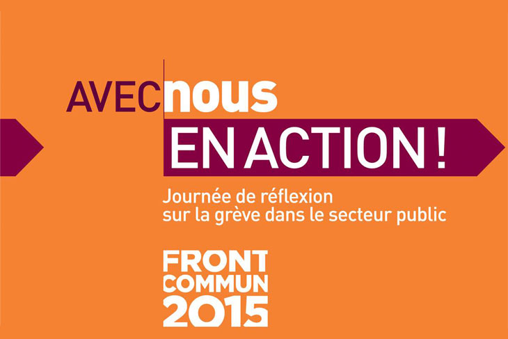 Le Front commun regroupe le Secrétariat intersyndical des services publics (SISP, formé de la CSQ, du SFPQ et de l’APTS), la Confédération des syndicats nationaux (CSN) et la Fédération des travailleurs et travailleuses du Québec (FTQ). Ensemble, ces organisations représentent plus de 400 000 travailleuses et travailleurs des réseaux de la santé et des services sociaux, de l’éducation, de l’enseignement supérieur et de la fonction publique du Québec. Les conventions collectives du secteur public viennent à échéance le 31 mars 2015.