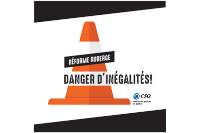 À l’occasion de la conférence de presse, la présidente de la CSQ a lancé l’opération « Réforme Roberge : danger d’inégalités! » Cette campagne s’inspirera de la signalisation routière afin d’illustrer les dangers que comporte le projet de loi no 40 pour l’accentuation des iniquités dans les services offerts d’une école à l’autre et les inégalités dans la prise de décisions au sein de la nouvelle structure. Également, la présidente de la CSQ a souligné que le projet de loi constitue dans son essence un désaveu complet de l’expertise du personnel. « En plus des inégalités qu’elle instaure, la réforme Roberge comporte des dispositions qui élimineraient la parité du personnel au conseil d’établissement et restreindraient encore davantage l’apport du personnel dans la prise de décisions. Ce dérapage en règle porte une atteinte directe à l’autonomie et au jugement professionnels du personnel. C’est une dérive inacceptable », explique la présidente, Sonia Ethier.