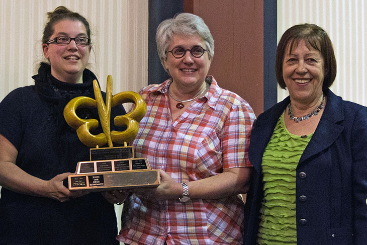 Sherbrooke, le 15 mai 2015. – Lors du Conseil général de la Centrale des syndicats du Québec (CSQ), qui a eu lieu à Sherbrooke cette semaine, les Établissements verts Brundtland (EVB-CSQ) ont remis le prix Papillon d’or à la coordination régionale du Bas-Saint-Laurent-Est pour son engagement dans la promotion de l’écologie, du pacifisme, de la solidarité et de la démocratie.