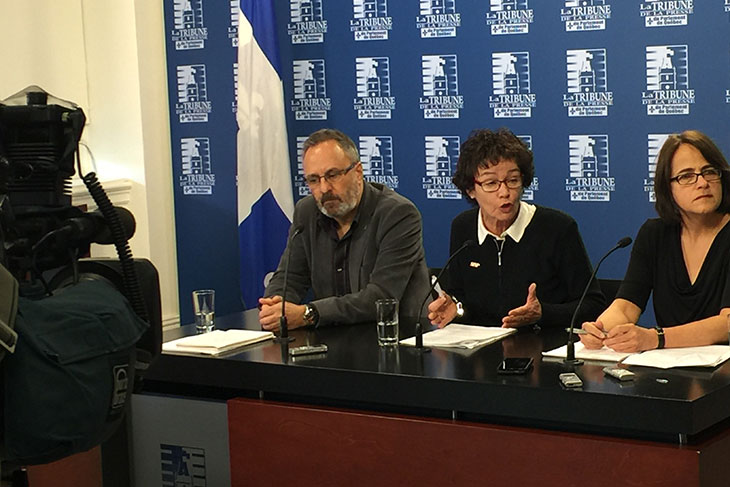 « Afin de laisser toute la place à la négociation, nous avons décidé de reporter les journées de grève prévues les 1er, 2 et 3 décembre prochain, mentionne Francine Lévesque, vice-présidente de la CSN. Il ne s’agit pas pour nous d’annuler ces journées, mais de laisser la chance au gouvernement de saisir l’opportunité que nous lui offrons aujourd’hui. Martin Coiteux doit comprendre le message : les membres du Front commun sont déterminés à améliorer leurs conditions de travail et l’accessibilité aux services publics pour l’ensemble de la population. Et le report de nos journées de grève pourrait s’avérer de courte durée si aucun mouvement significatif du gouvernement n’est constaté aux tables de négociation. »