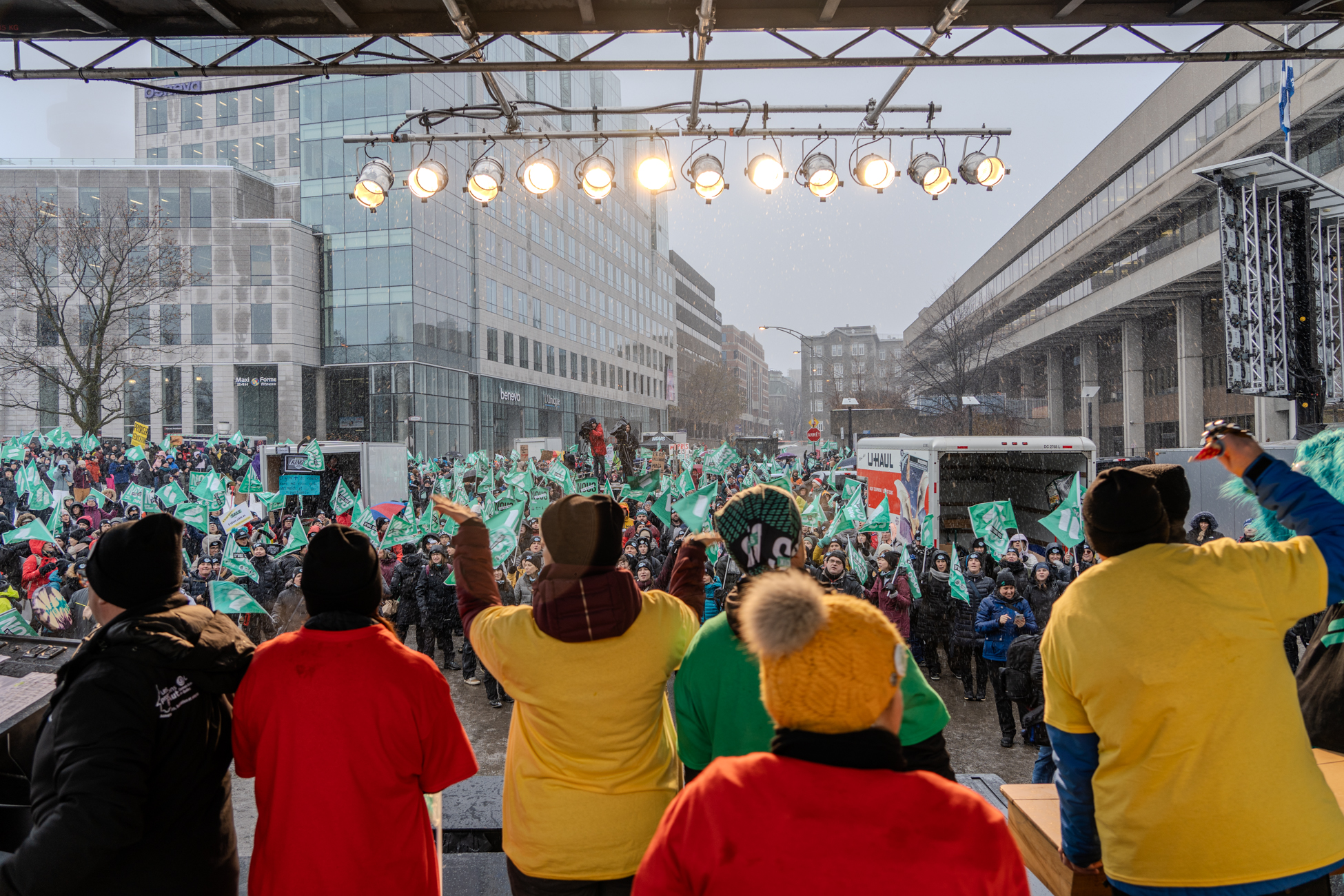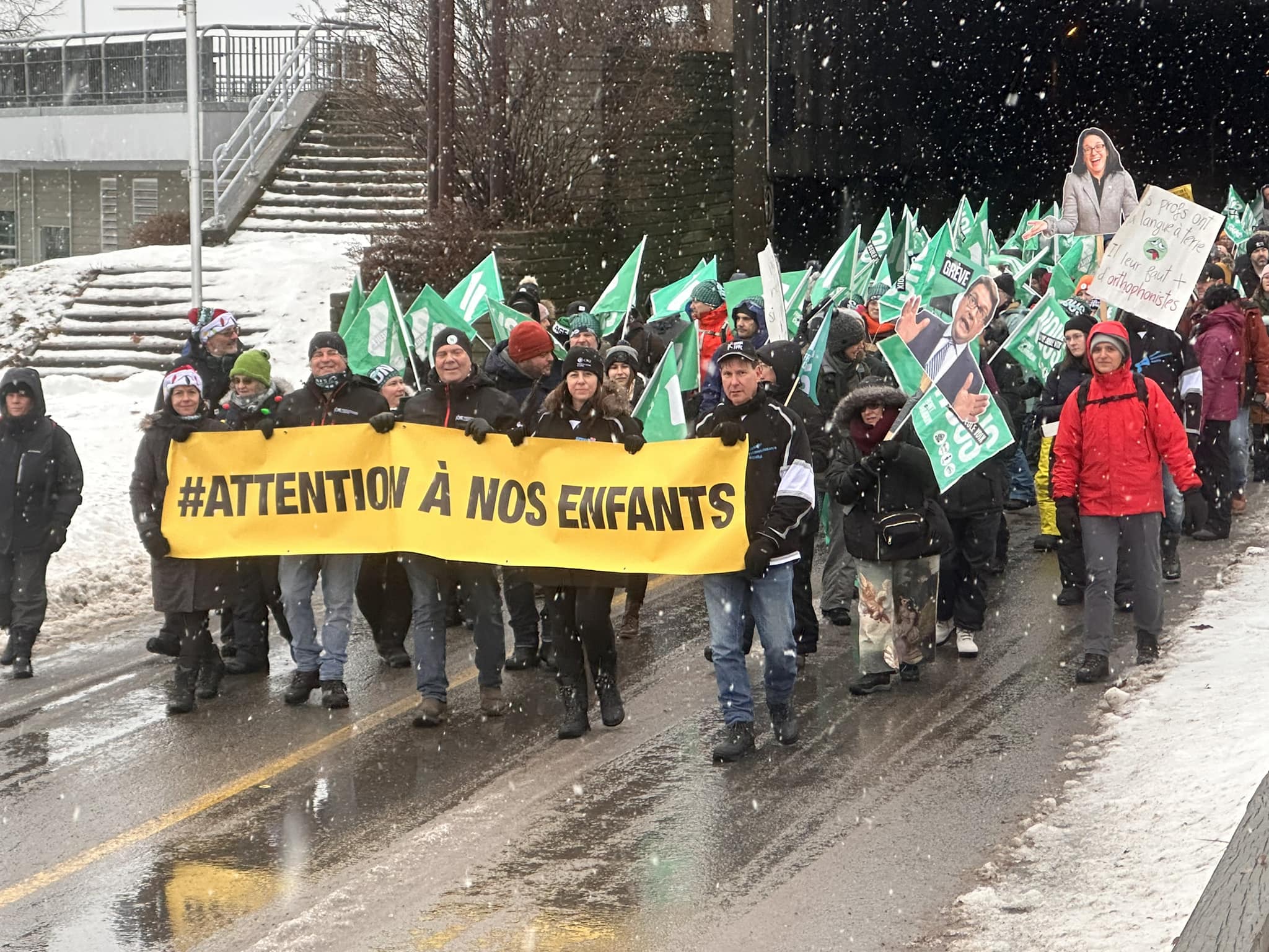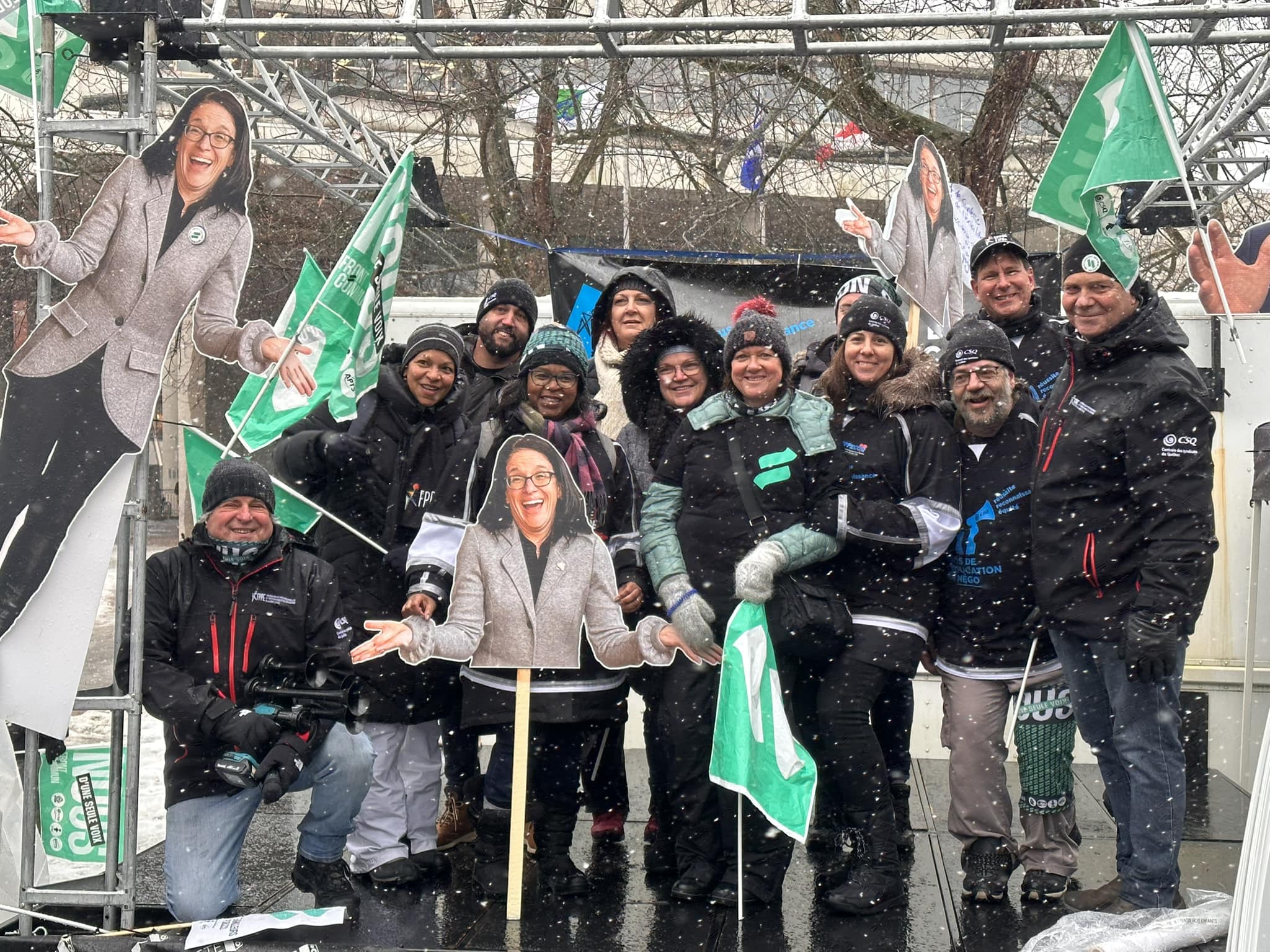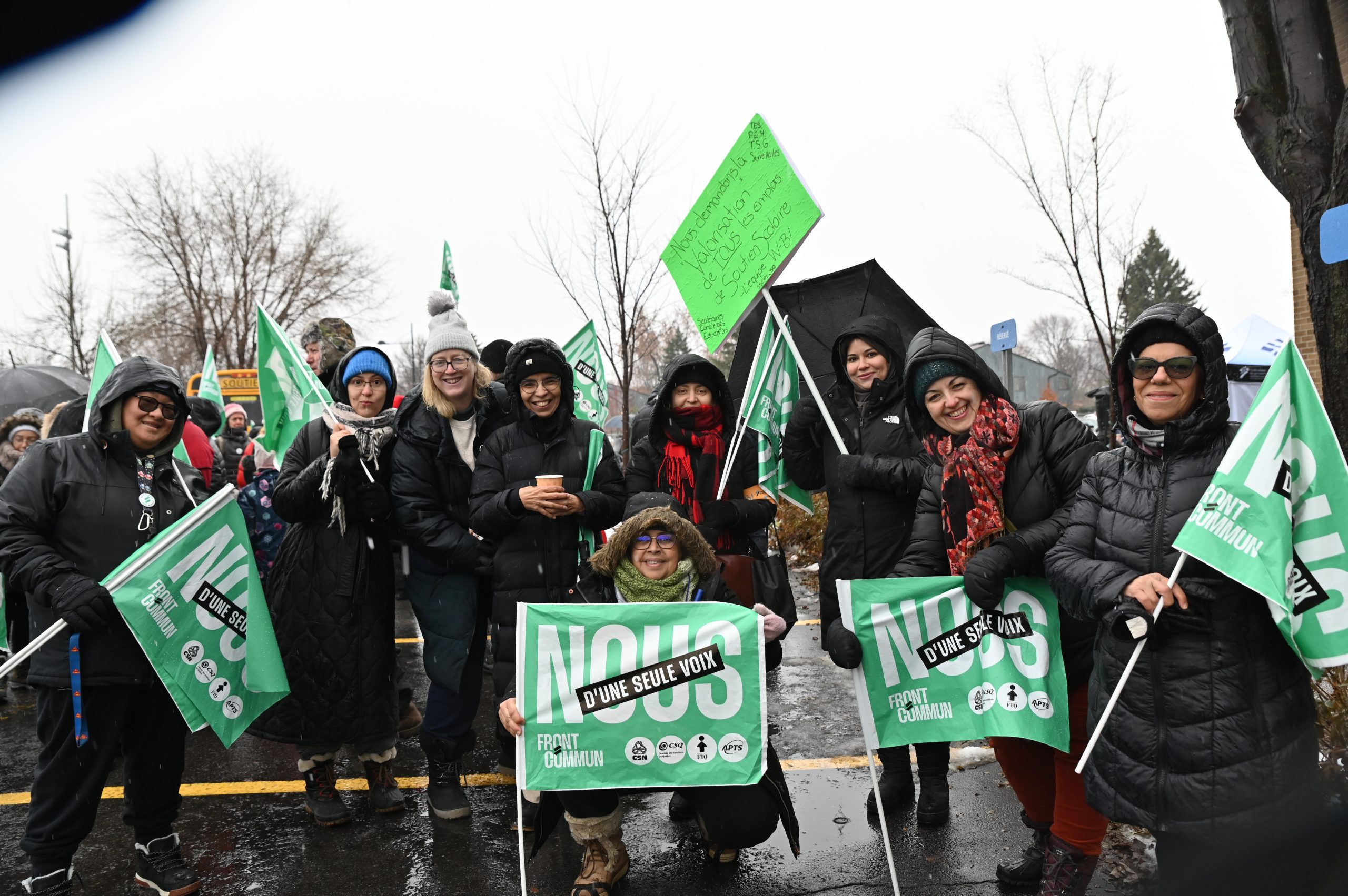 Toute la semaine, le personnel de soutien scolaire s’est aussi fait voir et entendre sur les lignes de piquetage un peu partout à travers le Québec. Le 11 décembre, les grévistes des syndicats affiliés à la Fédération du personnel de soutien scolaire (FPSS-CSQ) étaient nombreux devant le centre administratif du centre de services scolaire de la Pointe-de-l’Île, à Montréal. Le président de la FPSS-CSQ, Éric Pronovost, a profité de l’occasion pour mentionner que, malgré une accélération des rencontres aux tables sectorielles, d’importants enjeux restent à convenir.