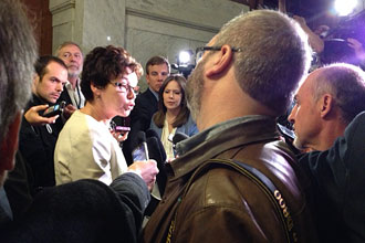 Québec, le 1er mai 2014. – Poursuivant la tradition, les chefs des quatre centrales syndicales du Québec (FTQ, CSN, CSQ, CSD) rencontrent aujourd’hui le nouveau premier ministre du Québec, Philippe Couillard, à l’occasion de la Fête internationale des travailleuses et travailleurs.