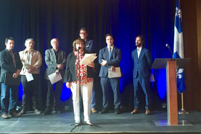 Montréal, le 21 août 2018. – Les Partenaires pour un Québec français (PQF), représentés par Jacques Létourneau, président de la CSN, Sonia Éthier, présidente de la CSQ, Sylvain Mallette, président de la FAE, Christian Daigle, président du SFPQ, Maxime Laporte, président de la SSJBM et du MQF, Étienne-Alexis Boucher, président du MNQ, Pierre Graveline, directeur général de la Fondation Lionel-Groulx, ainsi que Gilbert Bélanger, représentant de l’UDA, se sont réunis mardi au siège de la Société Saint-Jean-Baptiste à Montréal afin de lancer leur nouvelle plateforme commune. Le document comprend 53 recommandations destinées à enrichir le débat public lors de la prochaine campagne électorale et à inciter les partis politiques à prendre des engagements fermes envers le français au Québec.