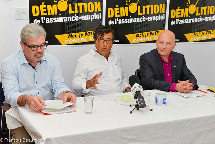 Lors d’une conférence de presse tenue à Montréal, ce matin, les leaders de cette coalition, soit Pierre Céré, porte-parole du Conseil national des chômeurs et chômeuses (CNC), Daniel B. Lafrenière, secrétaire-trésorier de la Centrale des syndicats du Québec (CSQ), et Jean-Claude Rocheleau, directeur général de l’Alliance québécoise des techniciens de l’image et du son (AQTIS), ont réitéré l’importance des changements réclamés à l’assurance-emploi.