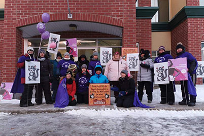 Québec, le 21 février 2020. – Des responsables en services éducatifs à la petite enfance (RSE), membres de la Fédération des intervenantes en petite enfance du Québec (FIPEQ-CSQ), ont manifesté tôt ce matin devant le bureau de la ministre responsable de la Condition féminine, Isabelle Charest, rue De la Chevrotière à Québec, pour lui demander de les appuyer dans le cadre de leurs négociations avec le gouvernement Legault.