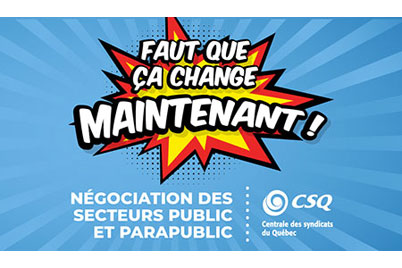La CSQ rappelle que la pénurie de personnel se fait lourdement sentir dans les réseaux publics et va jusqu’à compromettre les services à la population. « Le manque de personnel entraîne un problème généralisé d’épuisement et de surcharge de travail. Les absences croissantes pour lésions professionnelles et maladies, et les problèmes d’attraction et de rétention de la main-d’œuvre font en sorte que la situation est aujourd’hui intenable. Plus que jamais, les problèmes sont criants, structurels et méritent des solutions sérieuses. Nous sommes face à une véritable crise des conditions de travail et l’intransigeance du gouvernement oblige aujourd’hui les membres de la CSQ à annoncer qu’ils recherchent une autre voie pour tenter de débloquer la négociation. Notre message est clair et nous n’y dérogerons pas : il faut que ça change maintenant! », lance-t-elle.