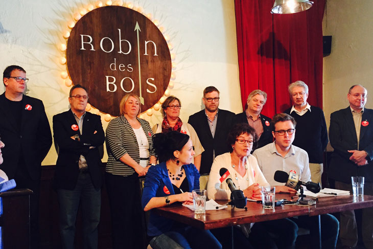 Les porte-parole du collectif ont rencontré les médias ce matin, à Montréal, afin de faire le point sur l’état de la mobilisation et de lancer un message au gouvernement de Philippe Couillard. « Nous sommes plus mobilisés et plus déterminés que jamais à poursuivre la bataille pour un Québec plus juste. Une société où la justice sociale passe notamment par des services publics accessibles et de qualité et par de vraies mesures afin d’aider les personnes en situation de pauvreté. Alors qu’il n’a pas reçu le mandat de la population de démanteler l’État québécois, ce gouvernement refuse tout dialogue social depuis son arrivée au pouvoir. Il doit aujourd’hui entendre le message que la population lui lance à la grandeur de la province », a expliqué la porte-parole pour les organisations syndicales et présidente de la Centrale des syndicats du Québec (CSQ), Louise Chabot.