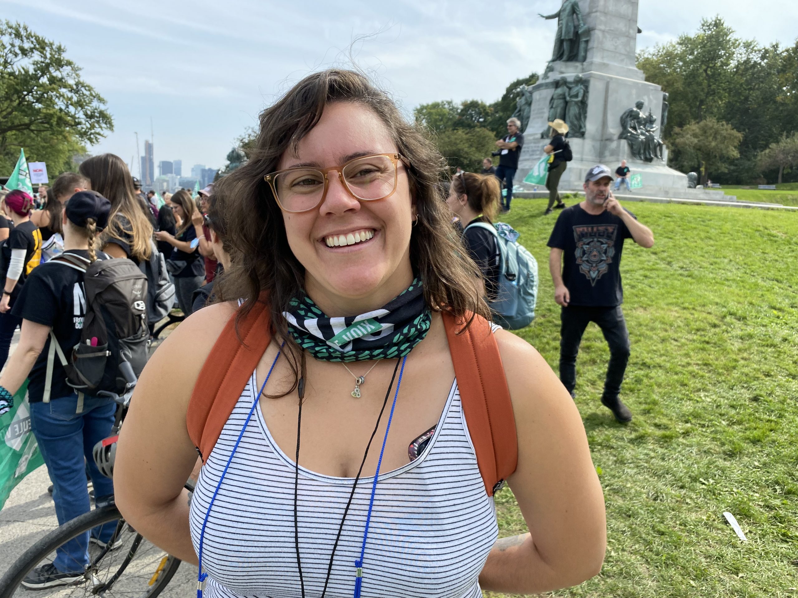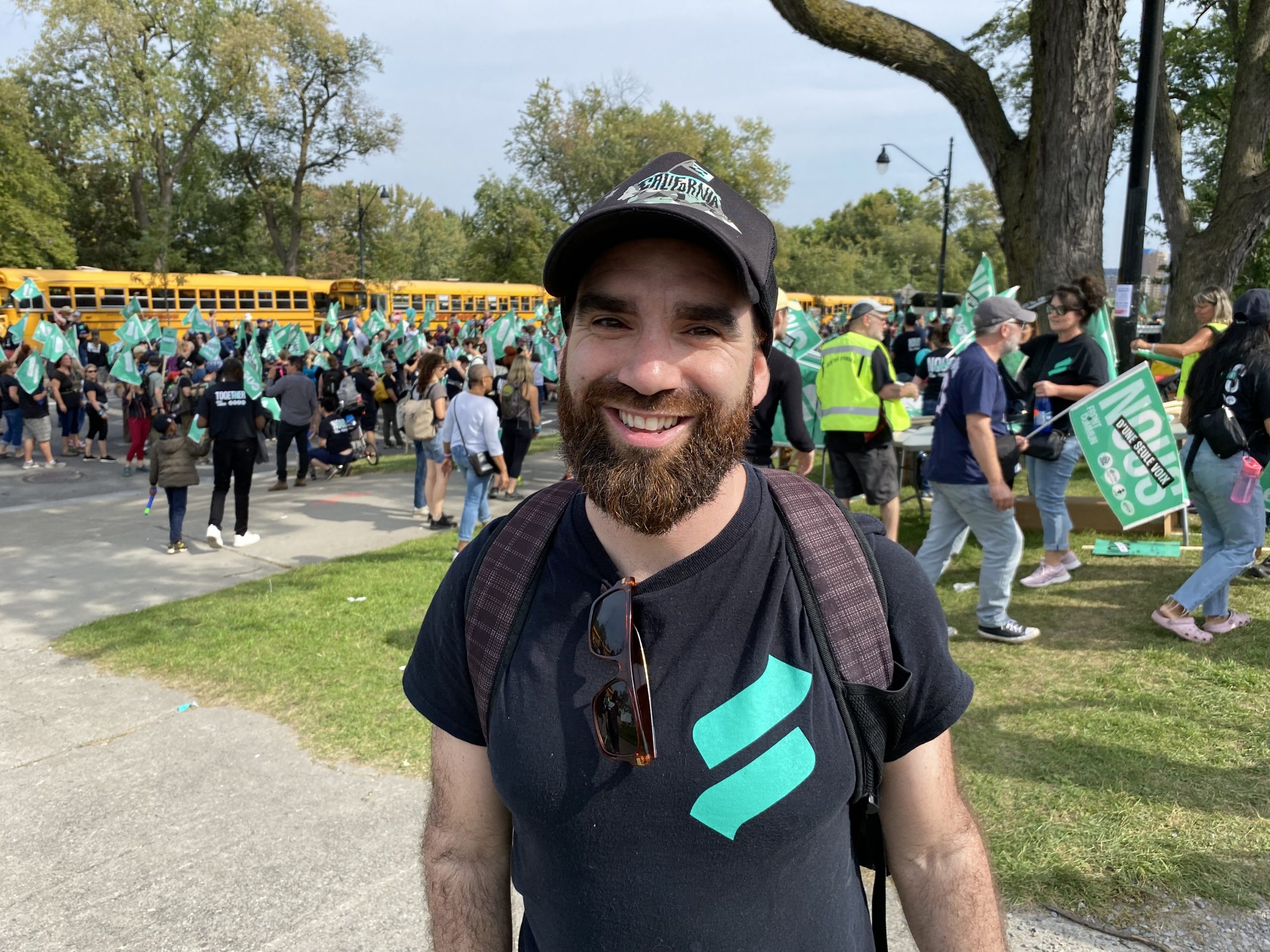 « Je suis là pour manifester pour nos conditions de travail qui sont exécrables! Il faut augmenter nos conditions salariales et améliorer nos conditions dans les classes pour réduire le nombre d’élèves. La tâche est ardue présentement, donc on veut plus de services pour les élèves. »