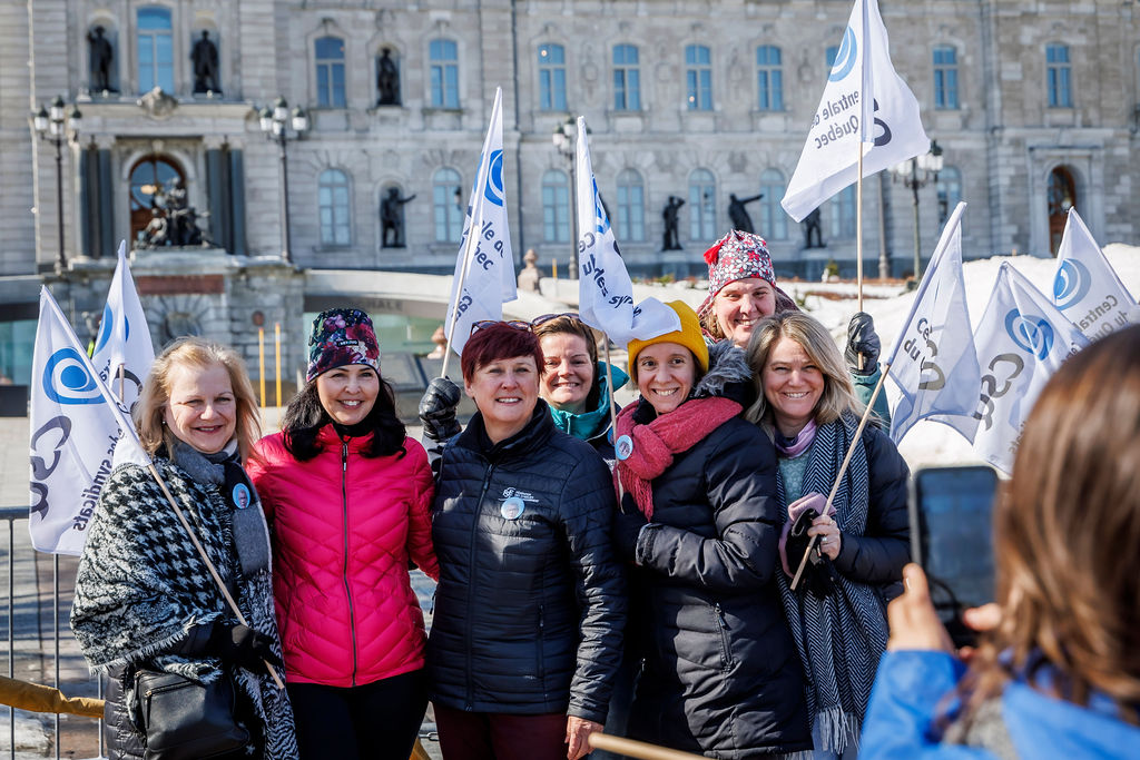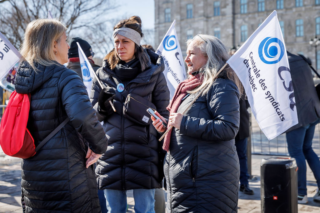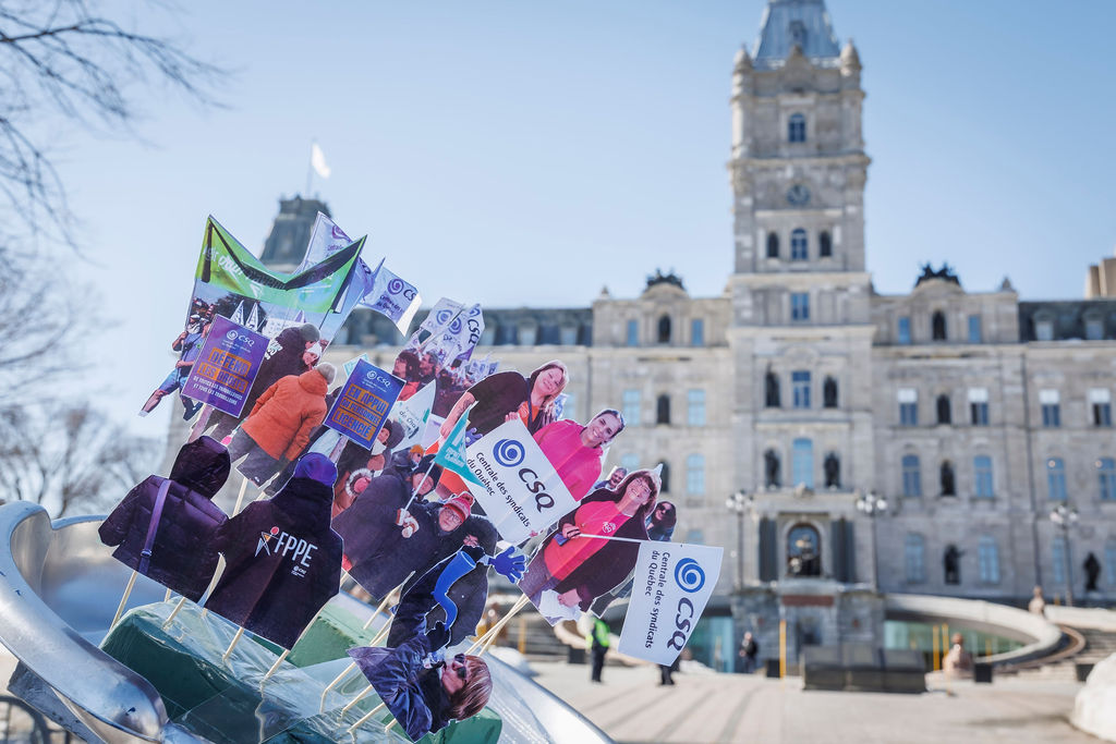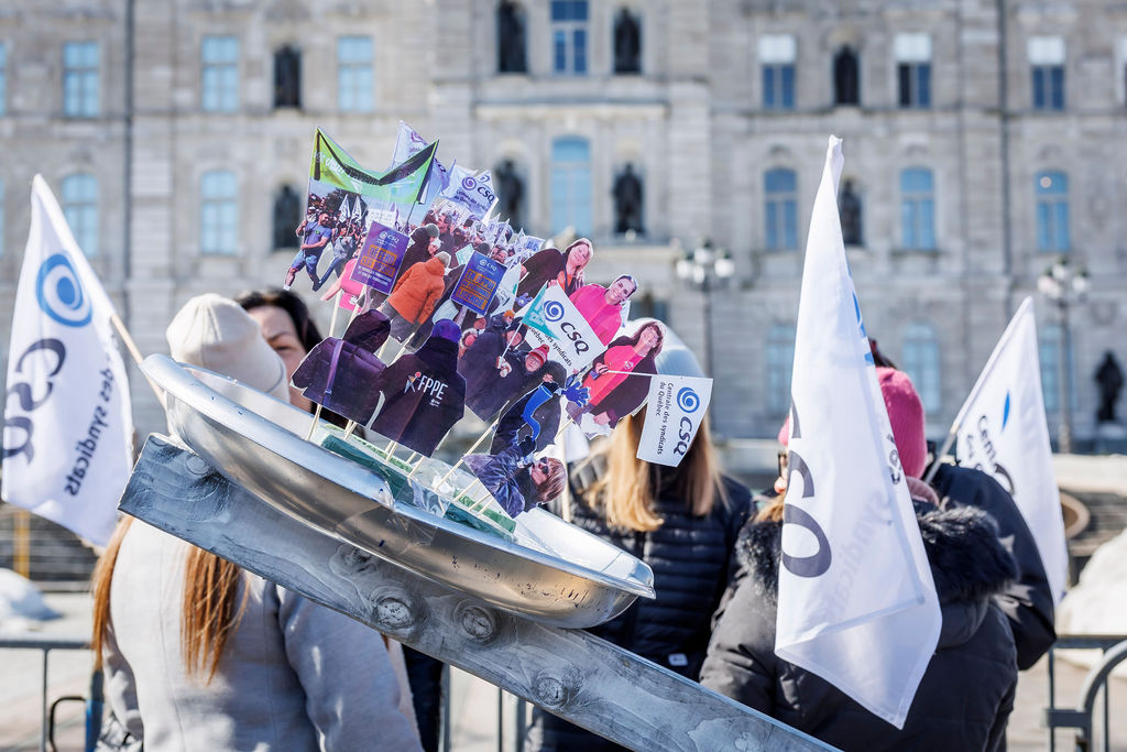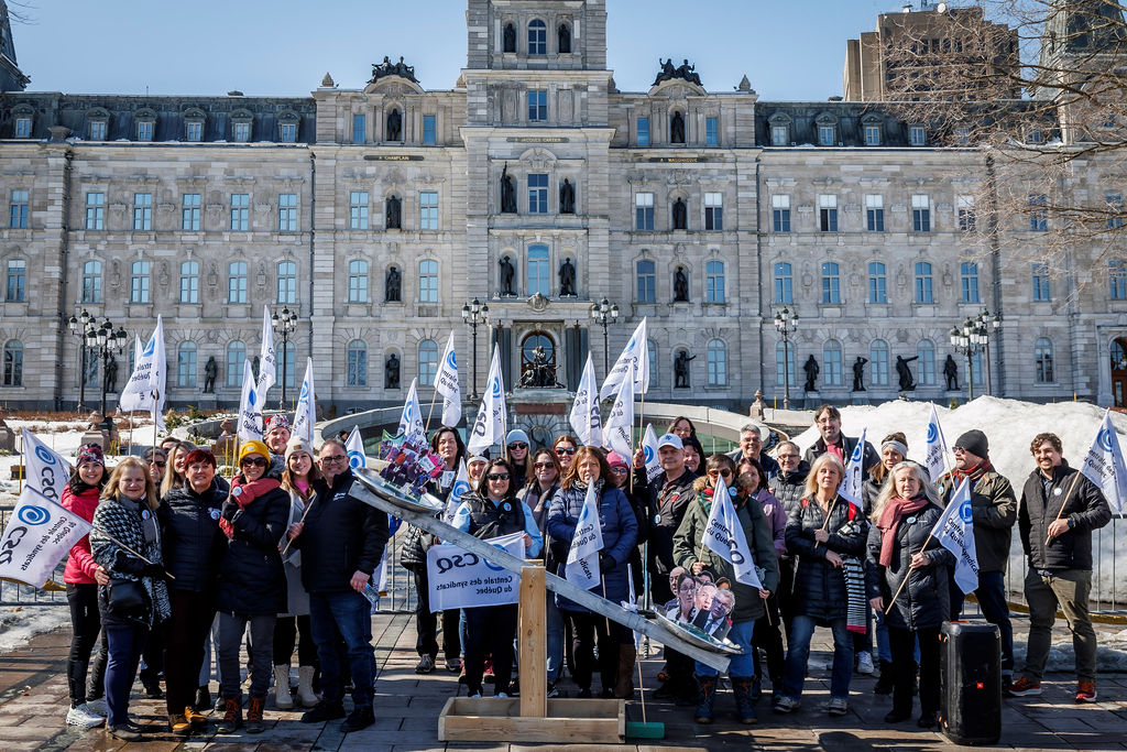 Inutile, nuisible et inconstitutionnel. Voilà comment la CSQ décrit le projet de loi no 89 (PL 89), qui vient notamment limiter le droit de grève des travailleuses et des travailleurs. Alors que la Centrale était de passage en commission parlementaire, le 20 mars, des dizaines de militantes et militants de la CSQ tenaient deux actions de mobilisation pour réclamer son retrait.