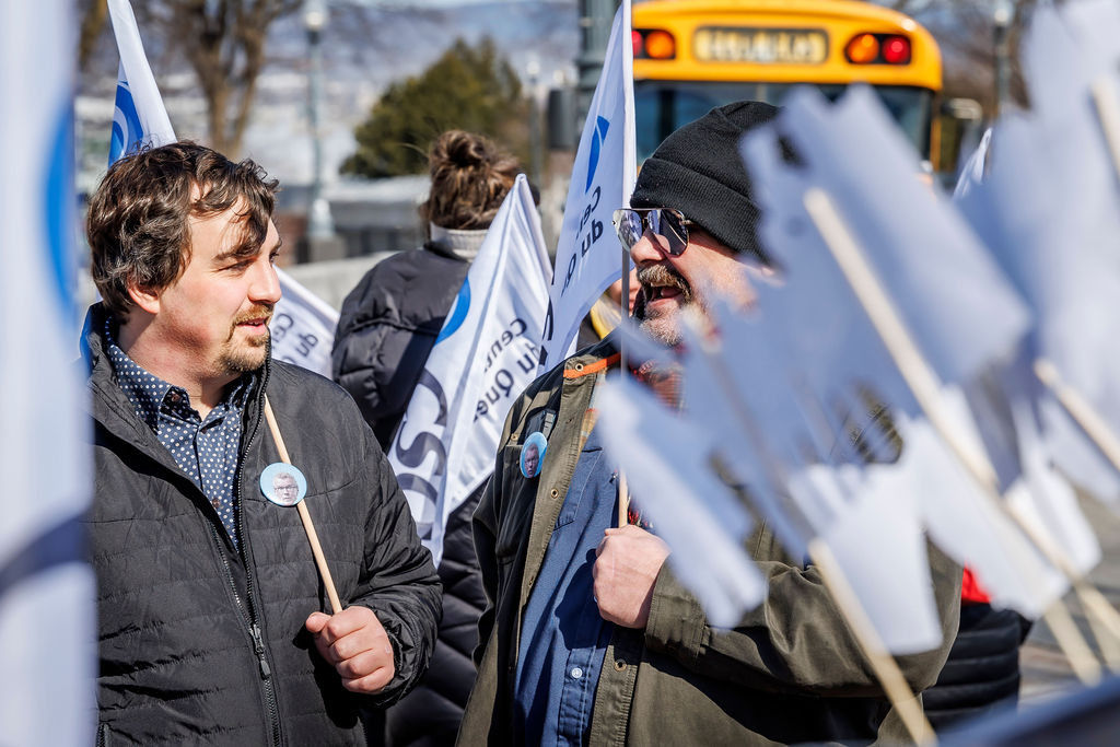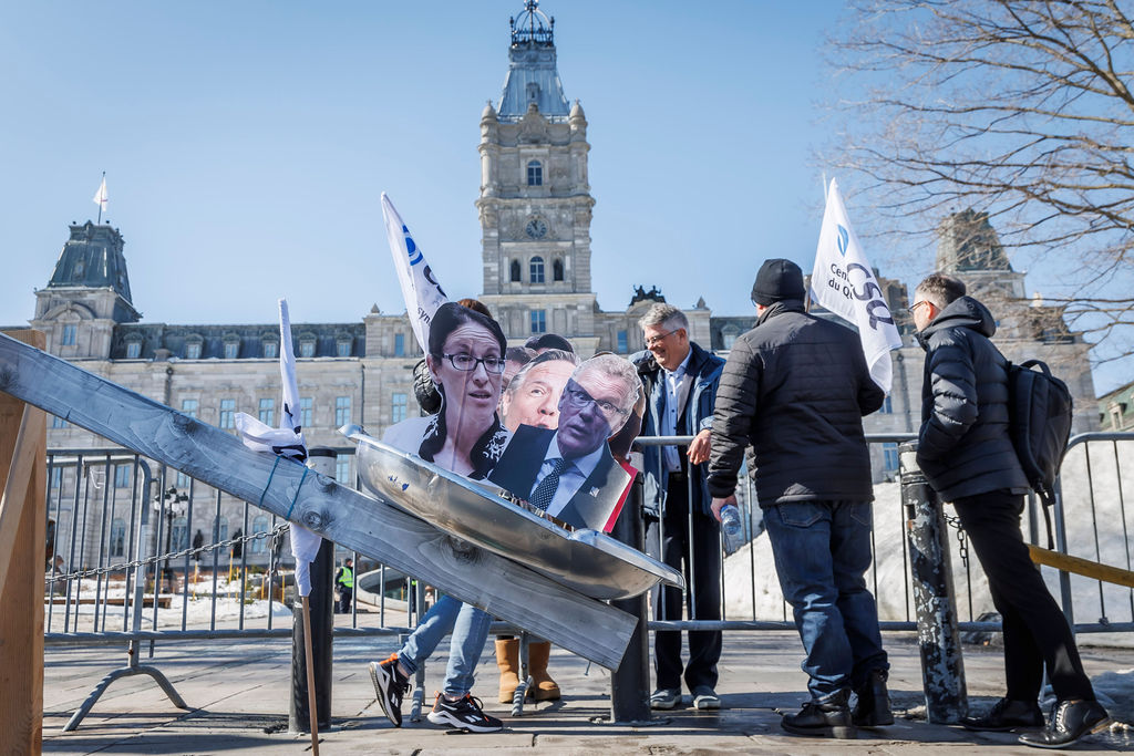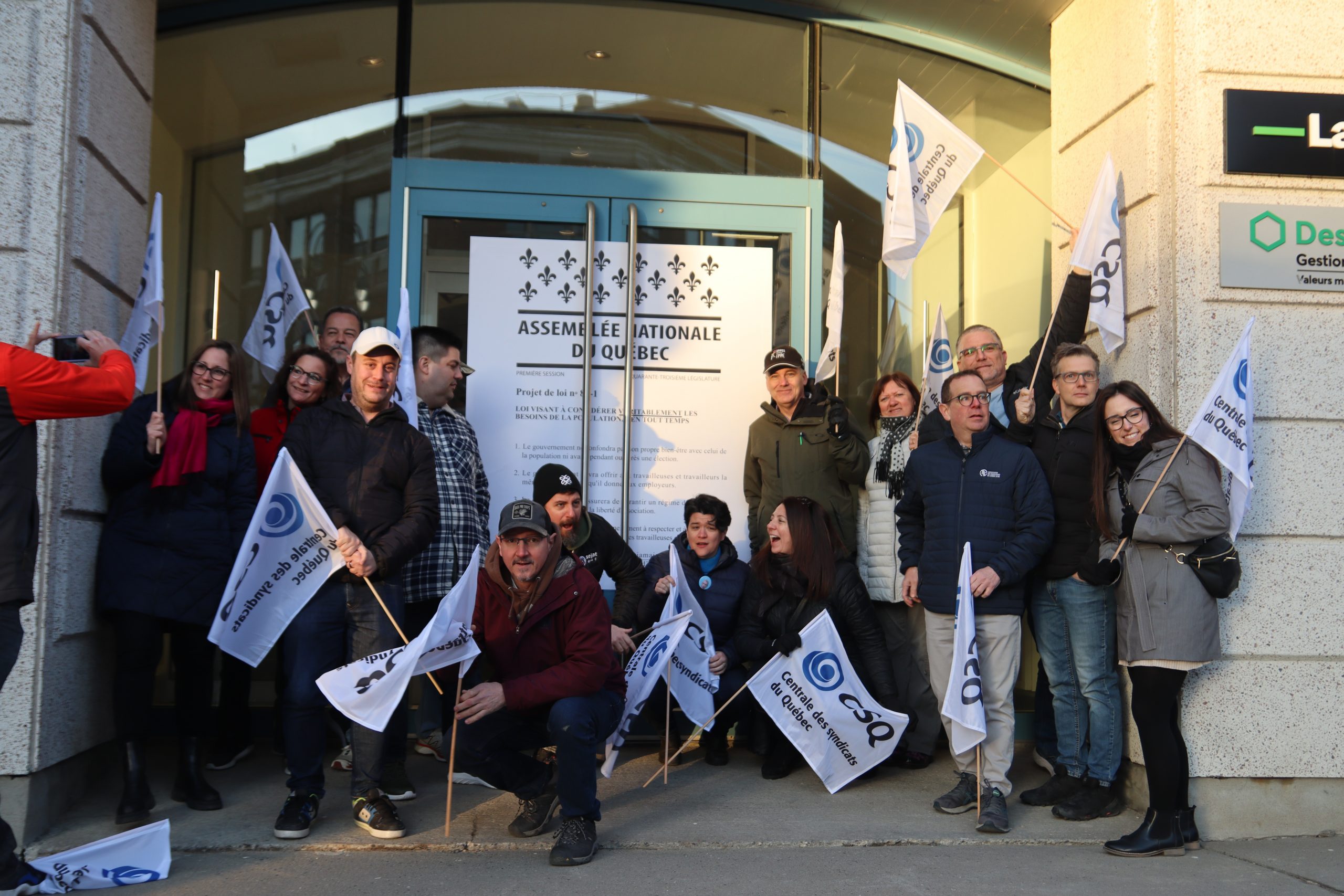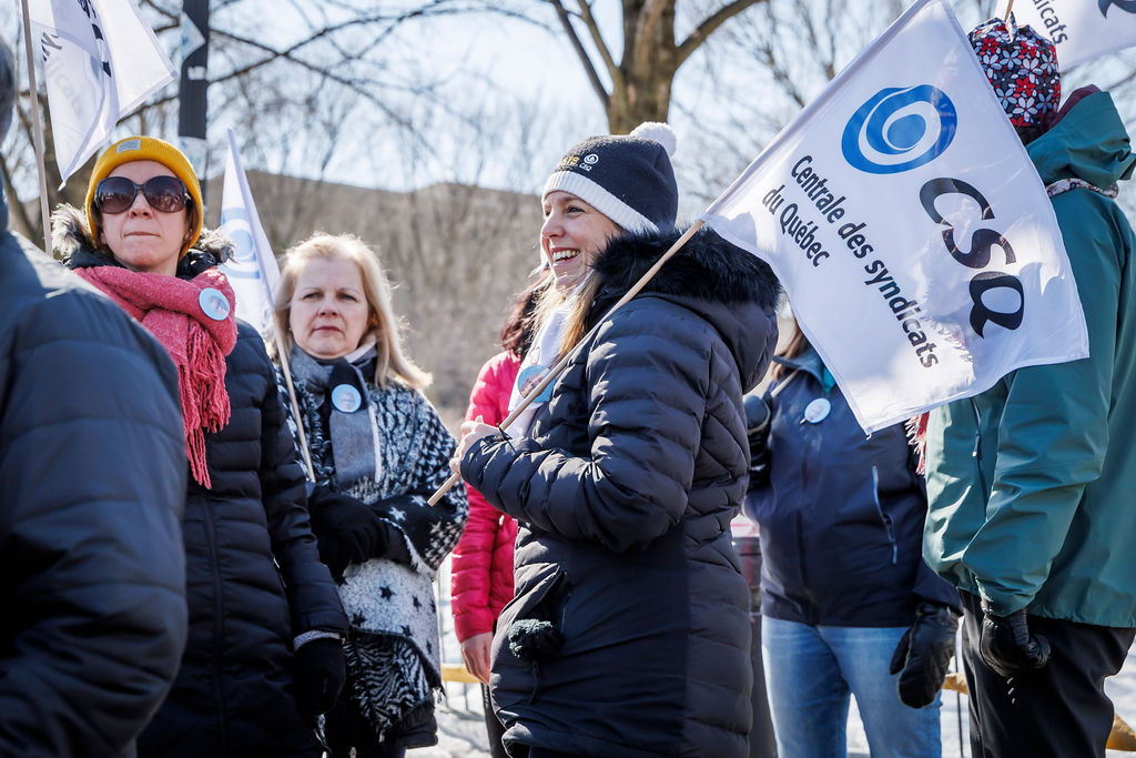 Inutile, nuisible et inconstitutionnel. Voilà comment la CSQ décrit le projet de loi no 89 (PL 89), qui vient notamment limiter le droit de grève des travailleuses et des travailleurs. Alors que la Centrale était de passage en commission parlementaire, le 20 mars, des dizaines de militantes et militants de la CSQ tenaient deux actions de mobilisation pour réclamer son retrait.