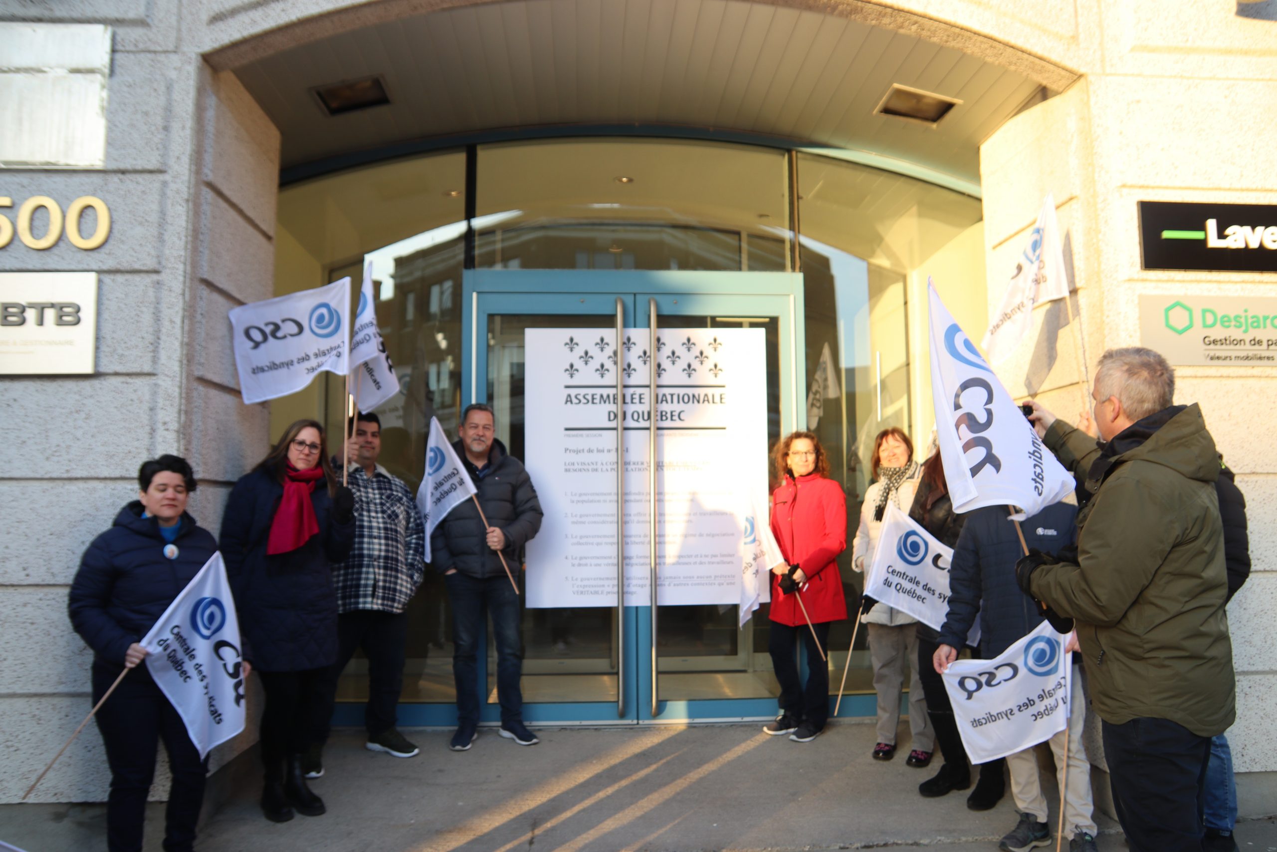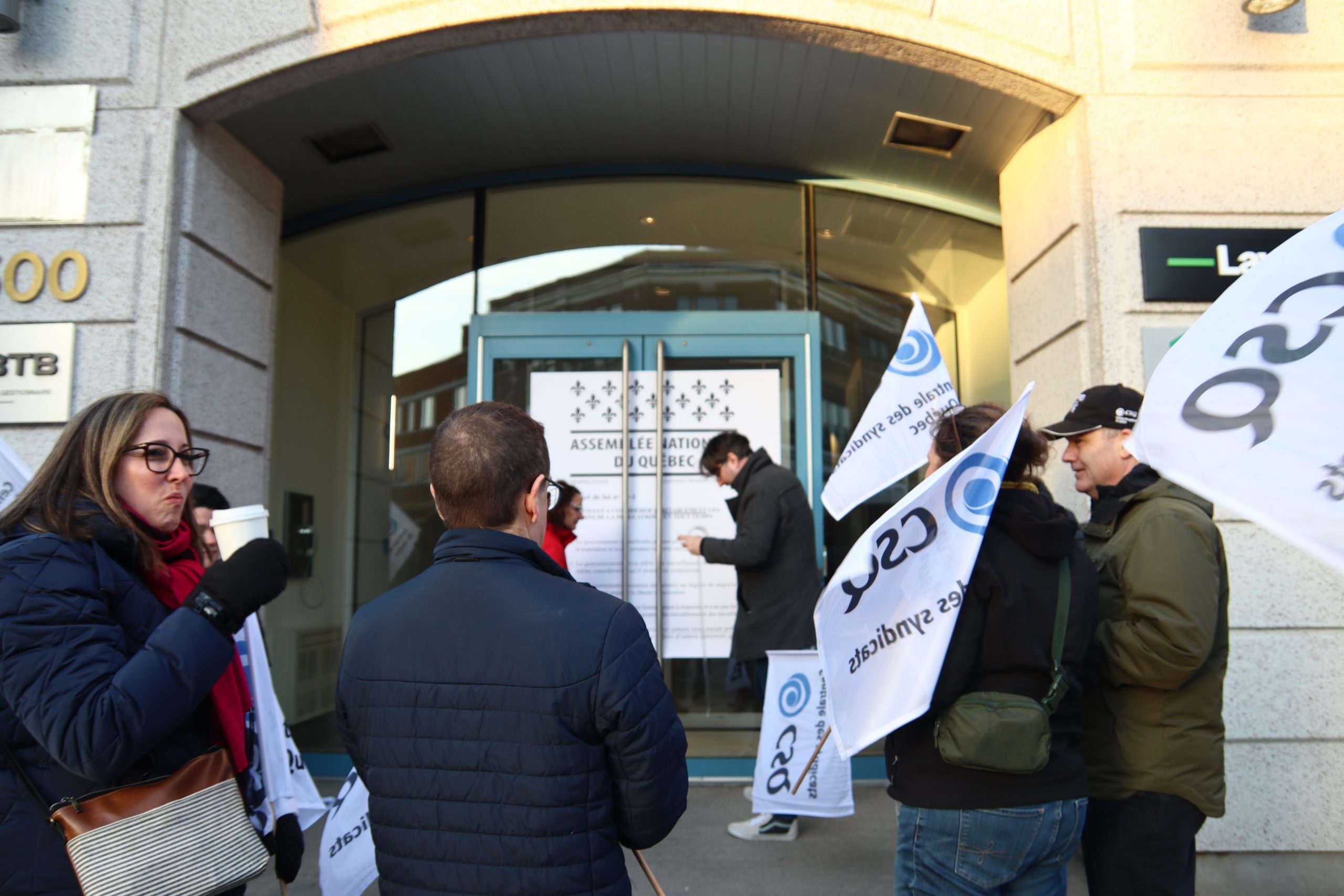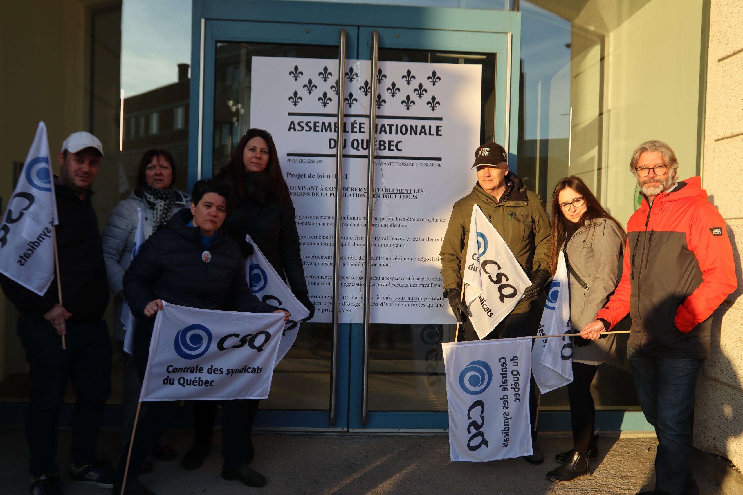 Le 20 mars, la CSQ a déposé sa version du PL89 au bureau du ministre Jean Boulet, à Trois-Rivières. (Photos : Félix Cauchy-Charest)