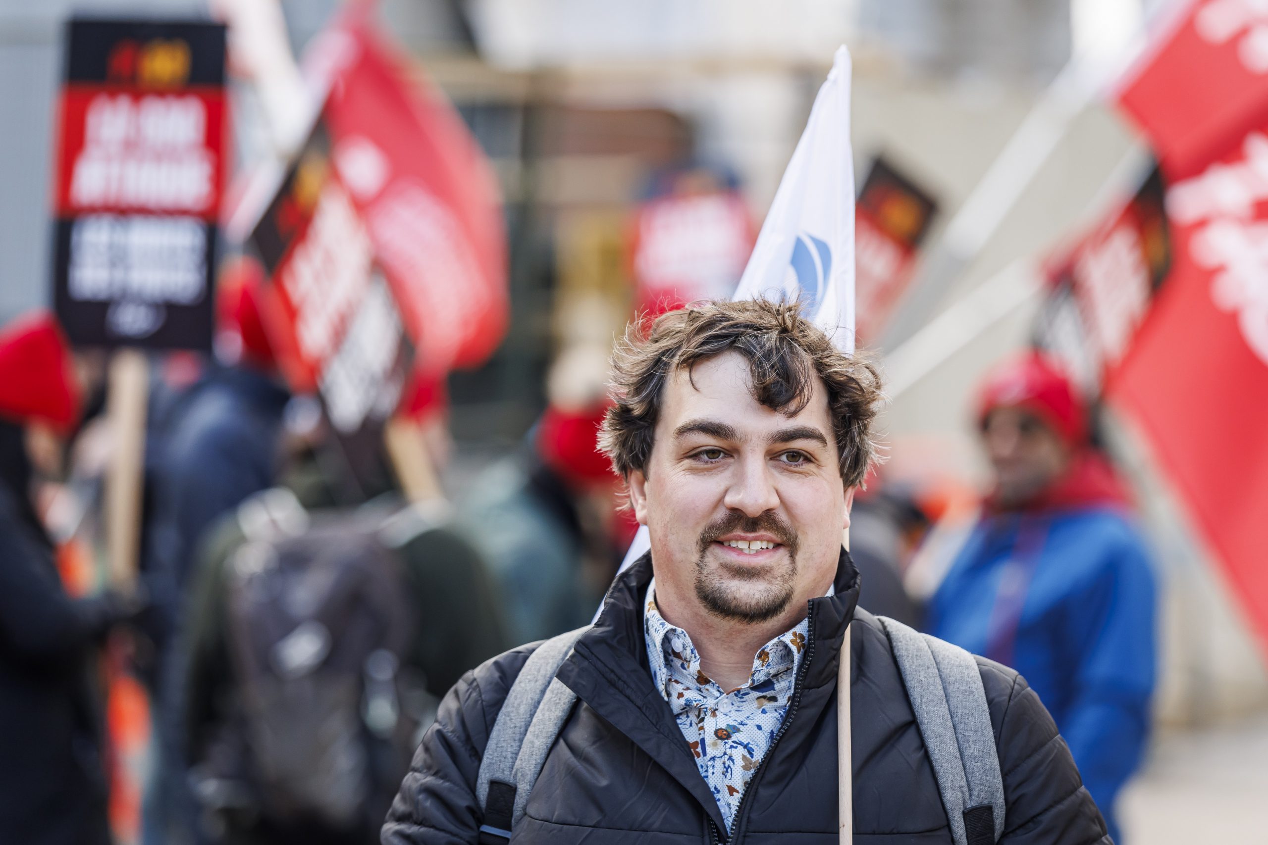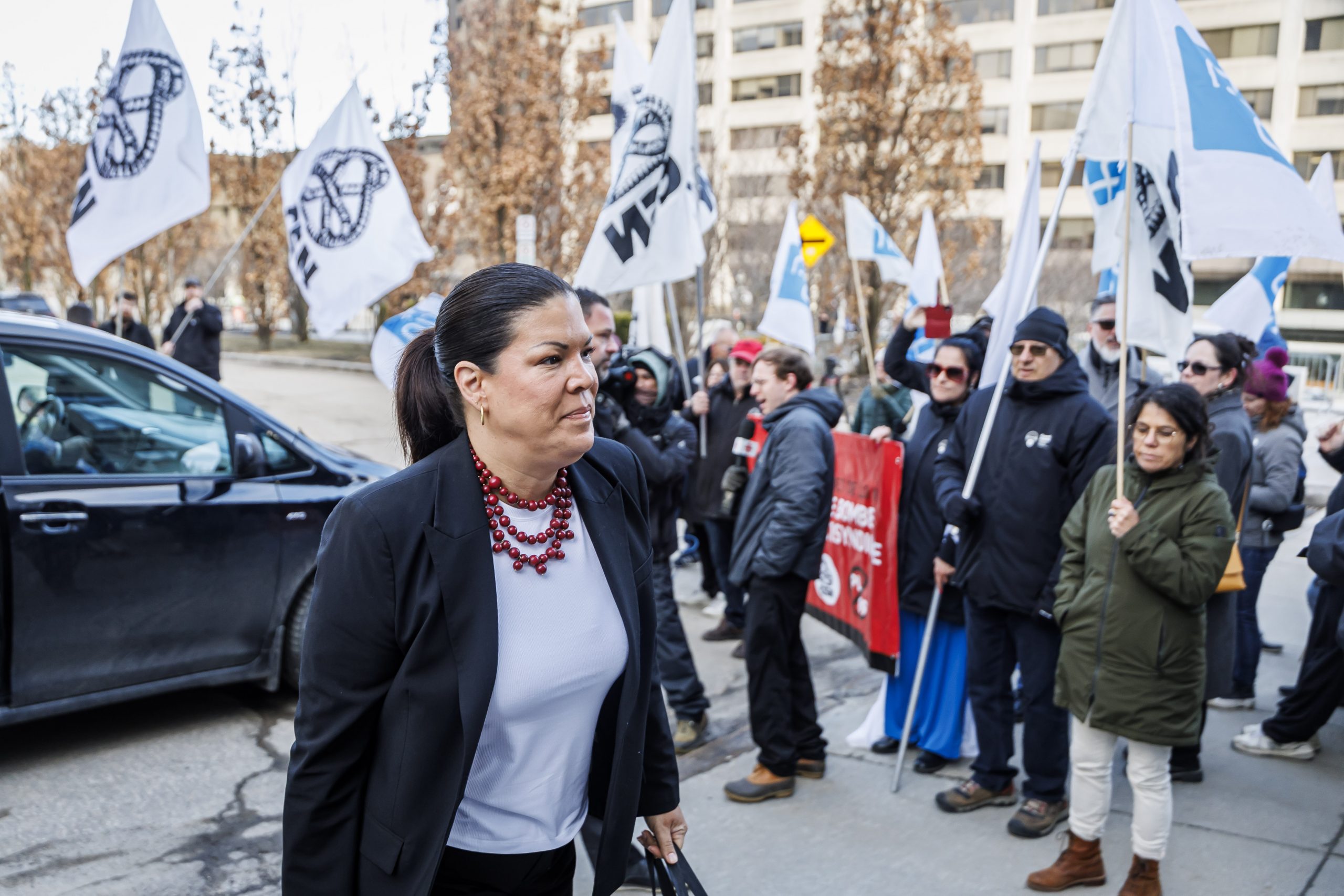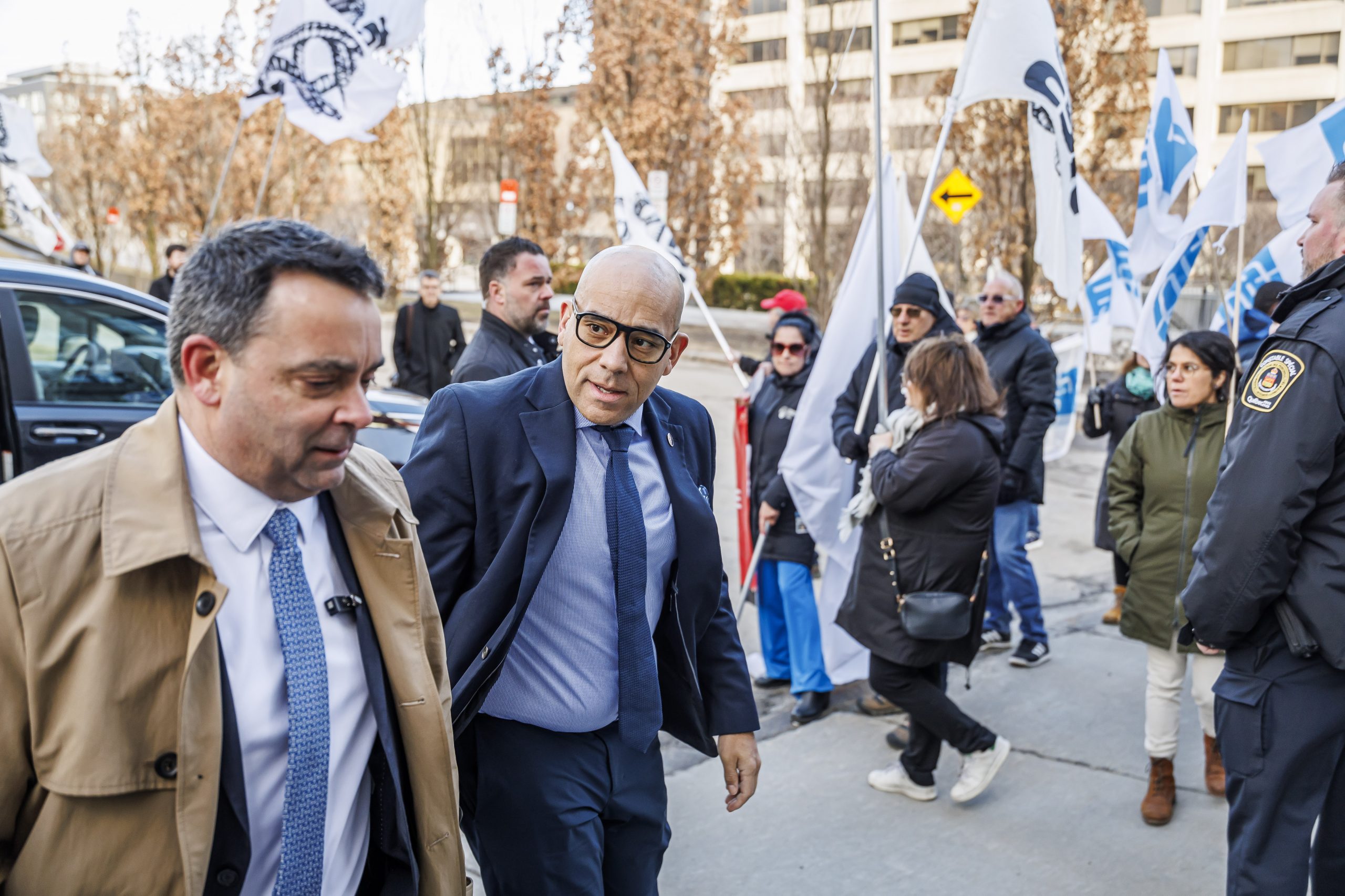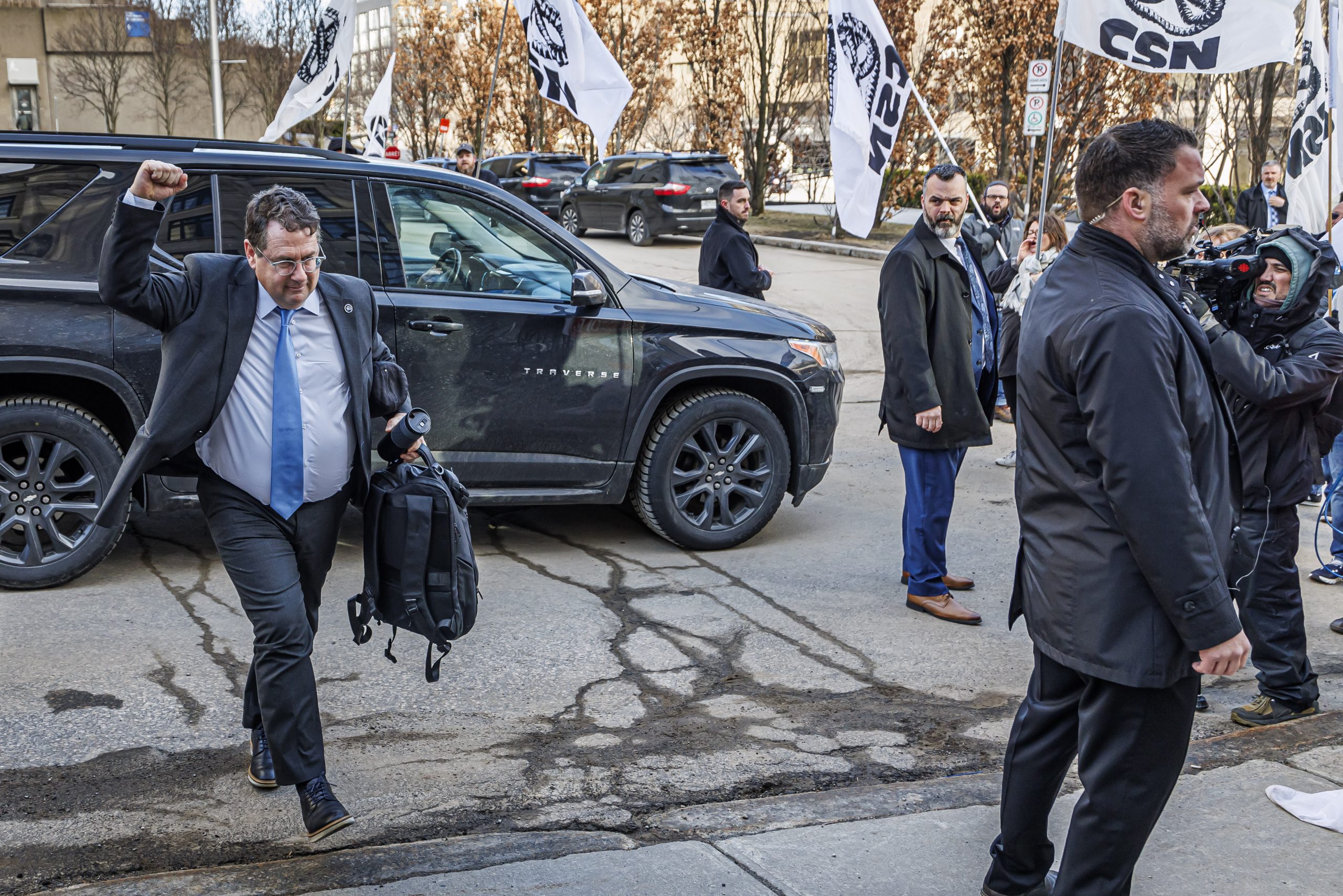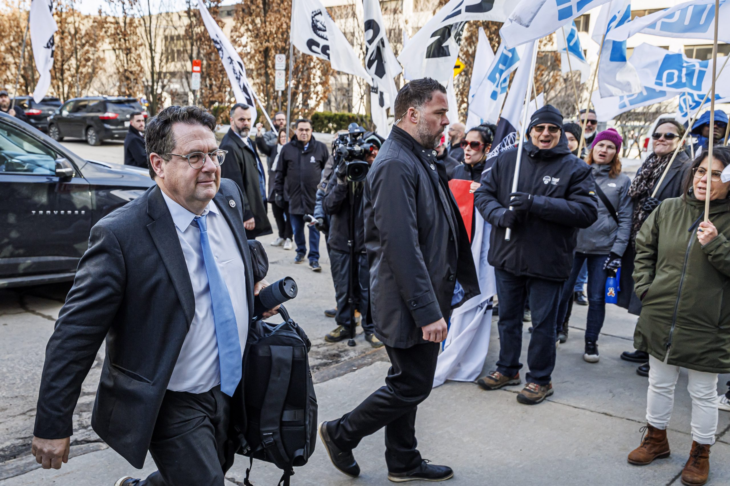 Les manifestantes et manifestants étaient présents, dès 7 h, pour accueillir les députées et députés à leur arrivée à l’Assemblée nationale. Drapeaux à la main, ils se sont fait voir et entendre des parlementaires dans le but de leur rappeler que le droit de grève est fondamental. Le gouvernement doit s’engager à reconnaître que l’équilibre de force actuel est l’objet d’un consensus social et qu’il doit le rester, encore aujourd’hui.