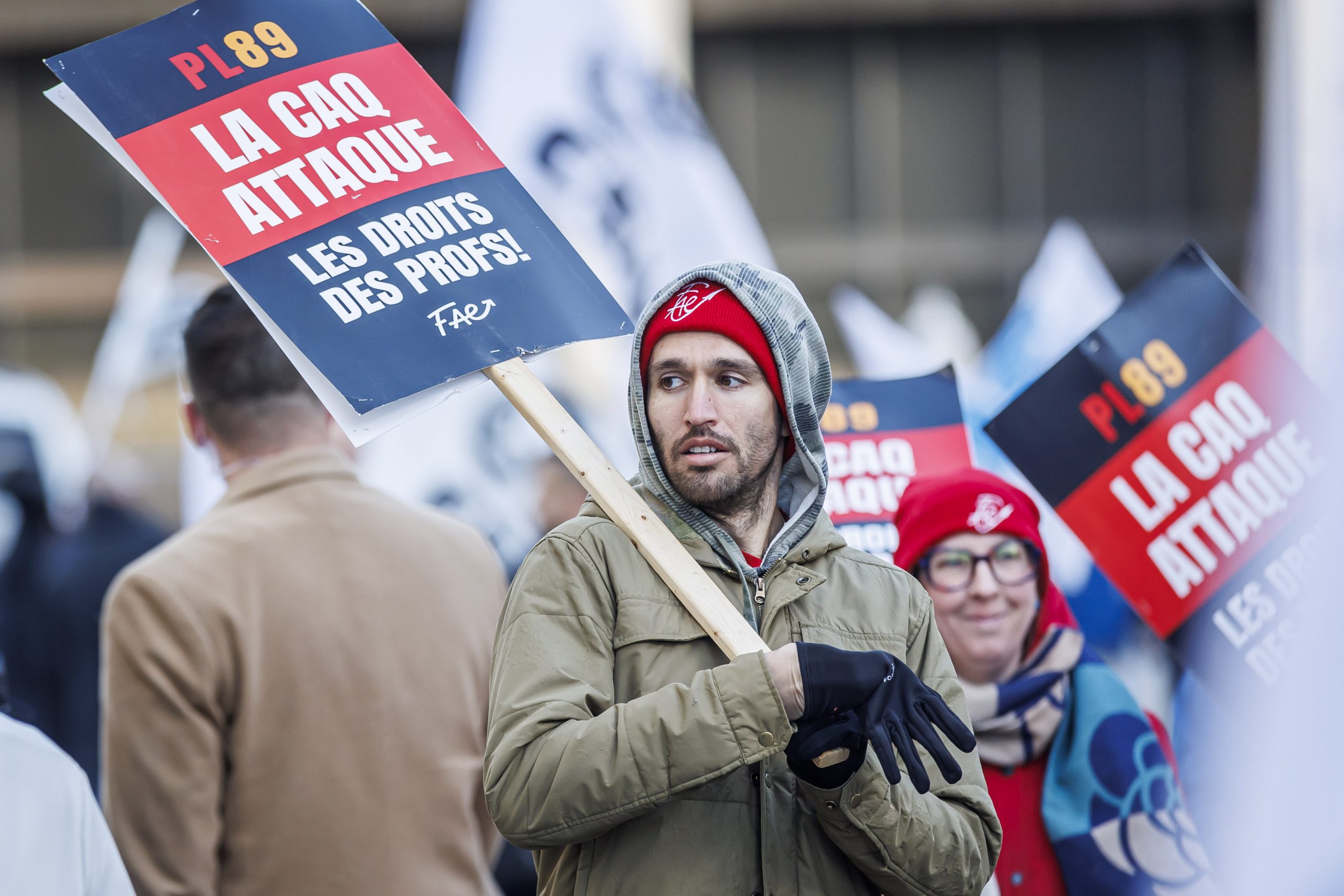 Loin de s’essouffler, la mobilisation contre le projet de loi no 89 du ministre du Travail, Jean Boulet, se poursuit. Le 23 avril, près de 200 personnes membres des principales organisations syndicales, dont la CSQ, ont offert un comité d’accueil aux parlementaires, leur rappelant ainsi qu’elles continueront à réclamer le retrait de ce projet de loi.