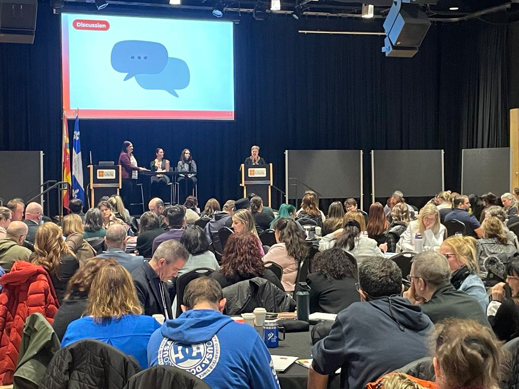 Le colloque Santé mentale des personnels scolaires, qui s’est déroulé les 7 et 8 avril derniers, à l’Université Laval de Québec, a mis en lumière les réalités alarmantes vécues par le personnel de l’éducation alors que les risques psychosociaux se multiplient dans leur milieu. Partenaire de l’événement, la CSQ y était accompagnée de représentantes et représentants de ses fédérations du réseau scolaire.