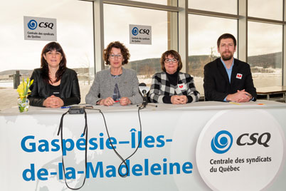 De leur côté, les porte-parole régionaux de la CSQ, soit le président du Syndicat des infirmières, infirmières auxiliaires et inhalothérapeutes de l’Est du Québec (SIIIEQ-CSQ), Pier-Luc Bujold, et Anne Bernier, présidente du Syndicat des travailleurs de l’éducation de l’Est du Québec (STEEQ-CSQ), soutiennent que cette mobilisation est d’autant plus nécessaire, en Gaspésie et aux Îles-de-la-Madeleine, où le secteur public a durement subi les compressions du gouvernement actuel. Rappelons que la CSQ représente 4 322 membres dans la région, dans les secteurs suivants : réseau scolaire, enseignement supérieur, petite enfance, santé, ainsi qu’au sein de la plus grande association de retraités du Québec, soit l’Association des retraitées et retraités de l’éducation et des autres services publics du Québec (AREQ-CSQ).