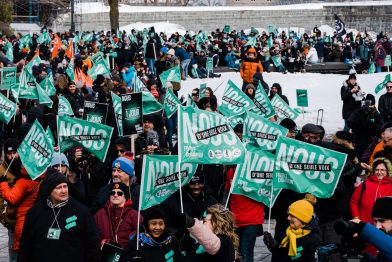 Entre 18,1 milliards $ et 23,4 milliards $ échappent chaque année au fisc canadien. C’est pour dénoncer ce type de situation, attirer l’attention du public sur l’inaction du gouvernement fédéral face à la croissance de l’écart fiscal et rappeler l’importance de faire payer la juste part aux multinationales et aux grandes fortunes que s’est réuni le collectif Échec aux paradis fiscaux, dont fait partie la Centrale des syndicats du Québec (CSQ), le 13 avril 2023 devant les bureaux de l’Agence du revenu du Canada (ARC), à Montréal.