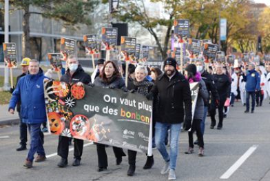 À l’approche d’une nouvelle ronde de négociations dans le secteur public, les fédérations du réseau scolaire de la Centrale des syndicats du Québec (CSQ), soit la FSE-CSQ, la FPSS-CSQ et la FPPE-CSQ, ainsi que l’APEQ, ont profité aujourd’hui, jour d’Halloween, du dépôt de leurs demandes sectorielles pour envoyer un message au Comité patronal de négociation et au gouvernement : « On vaut plus que des bonbons ».