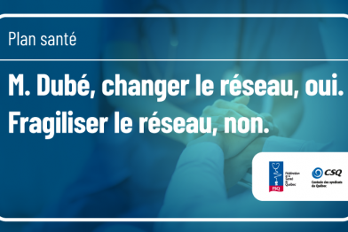 La Coalition Solidarité Santé, dont fait notamment partie la Centrale des syndicats du Québec (CSQ), invite toutes les organisations, quelles soient citoyennes, communautaires ou syndicales, à venir exprimer leur appui au réseau public de santé lors d’une mobilisation.