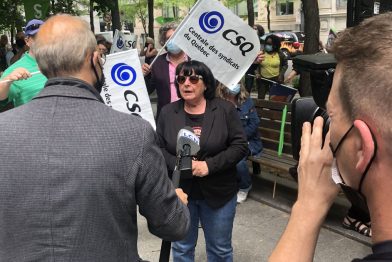 Dans le contexte où le gouvernement de François Legault s’entête avec des offres insuffisantes à l’endroit des centaines de milliers de travailleuses et de travailleurs des services publics, des organisations syndicales (CSN, CSQ, APTS, FTQ, SFPQ et SPGQ) ont perturbé, ce midi, les activités du Centre du commerce mondial, qui abrite notamment les ministères des Finances, du Commerce et de l’Enseignement supérieur. Elles ont sonné l’alarme pour les services publics en déployant, en plein cœur de l’édifice, des ballons d’hélium équipés de matériel sonore, créant ainsi un dérangement notable.