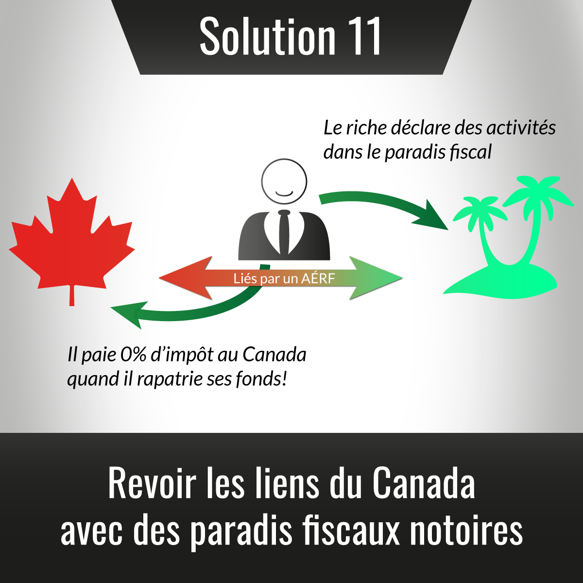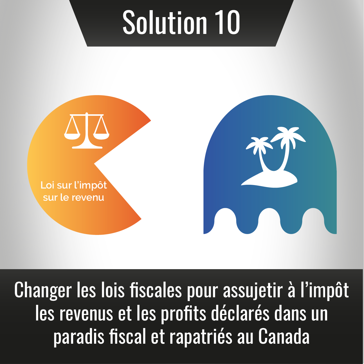 Changer les lois fiscales pour assujettir à l’impôt les revenus et les profits déclarés dans un paradis fiscal et rapatriés au Canada
