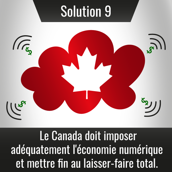 Les entreprises numériques, comme Netflix, occupent des parts du marché canadien de plus en plus grandes, parfois dominantes, dans leur secteur d’activité et font une concurrence déloyale aux entreprises établies au Canada. Certaines de ces entreprises évitent tout impôt au Canada et ne perçoivent pas les taxes de vente, contrairement aux entreprises d’ici, qui sont rigoureusement soumises au régime fiscal et aux contributions sociales en vigueur.