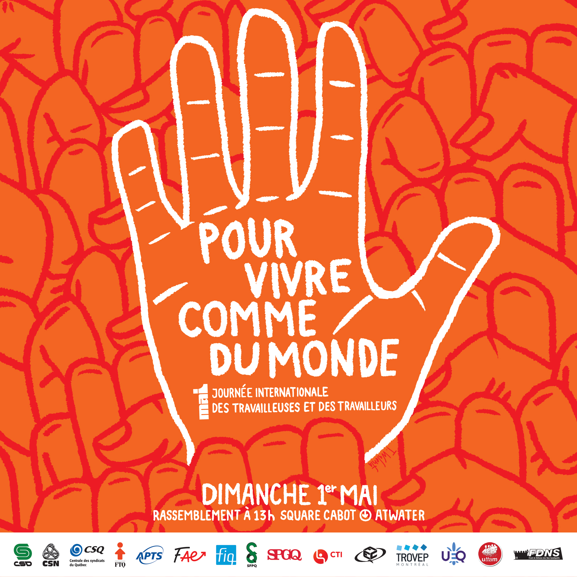 Le 1er mai prochain, soyons nombreuses et nombreux à nous rassembler pour la Journée internationale des travailleuses et des travailleurs. Ensemble, revendiquons un salaire décent et une stabilité d’emploi Pour vivre comme du monde.